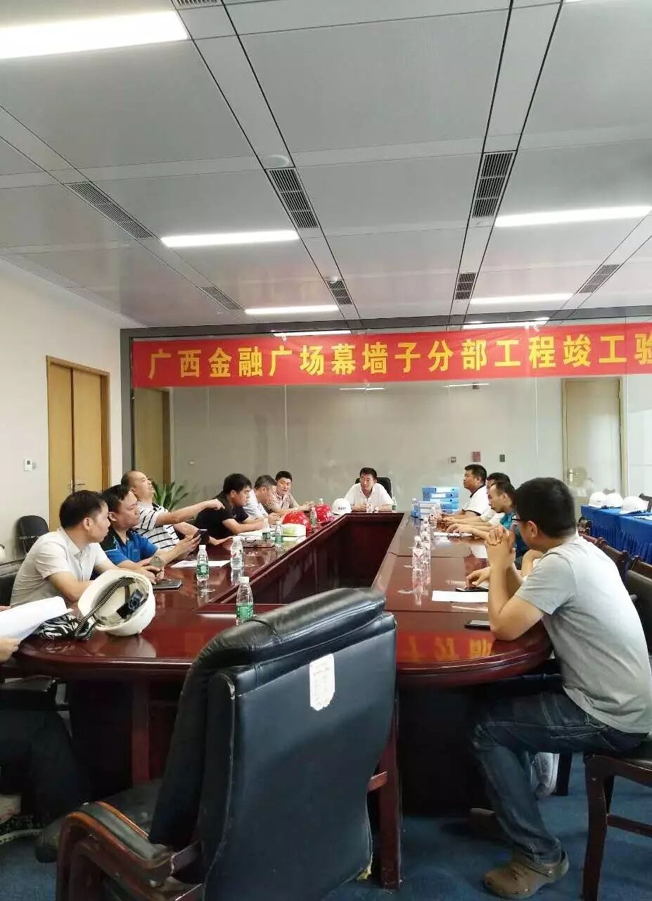 自2013年8月成功中标该项目之后,我司一直给予高度重视,迅速组建技术水平过硬、管理能力突出的项目团队,全力以赴攻克一切难题。经过近一年的紧张筹备,终于在2014年8月正式开始挂接单元体板块。经过三年时间的艰苦奋战,广西金融广场幕墙子分部工程终于完美收官,并且得到业主单位及其他分包单位的高度评价。